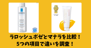 この記事ではラロッシュポゼのミセラークレンジング ウォーターとマナラのホットクレンジングゲル マッサージプラスについて比較した結果を紹介しています。