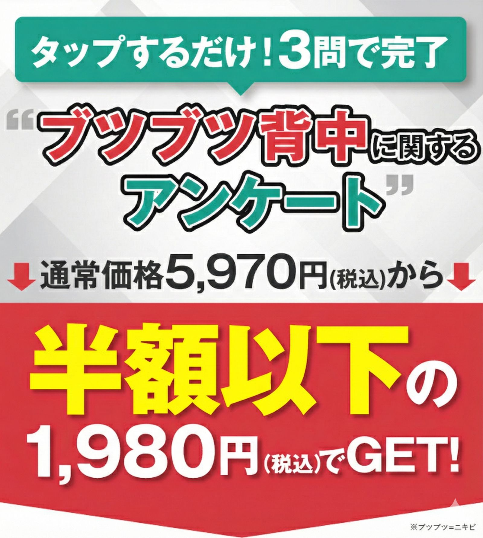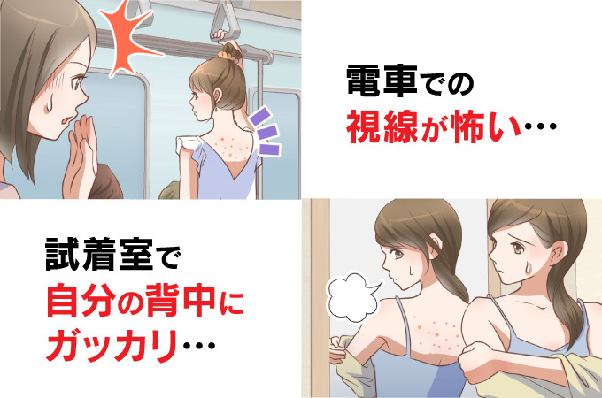 20歳から背中ニキビを発症し、人目がある温泉で着替えるときなどに自身を持てず辛いと感じていました。