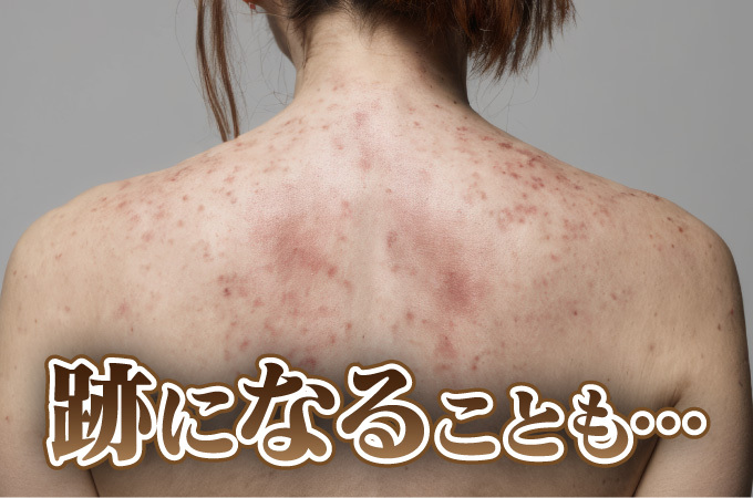 高校生の頃から背中が赤くブツブツで、所々黒ずんでいます。